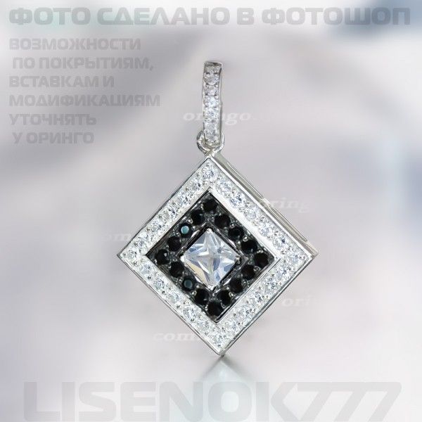 Или все белые цирконы, а средний ромб - черные мелкие цирконы + черный родий.