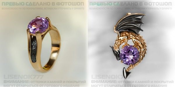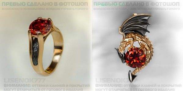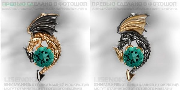 Дашенька, привет! Извини, что надоедаю.Пожалуйста, сделай подвес Дракоша с таким покрытием: туловище в позолоте, голова и стрелка на хвосте - черный родий, коготки - оставить в позолоте, а крылья - чёрные. Тогда по-моему будет смотреться хорошо с РАУХОМ. Уж больно зацепил меня этот камень вместе с Новеллой в комби!!! Буду очень, очень благодарна!!!