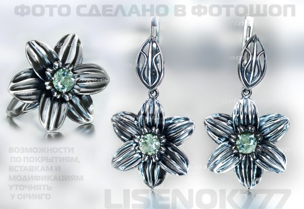 Добрый день Даша. Пожалуйста визуализируй серьги Нарцисс и кольцо Нарцисс с зелёным аметистом. Давно хочется украшение с этим камушком...необычное и винтажное - и никак не выберу. Спасибо!!!