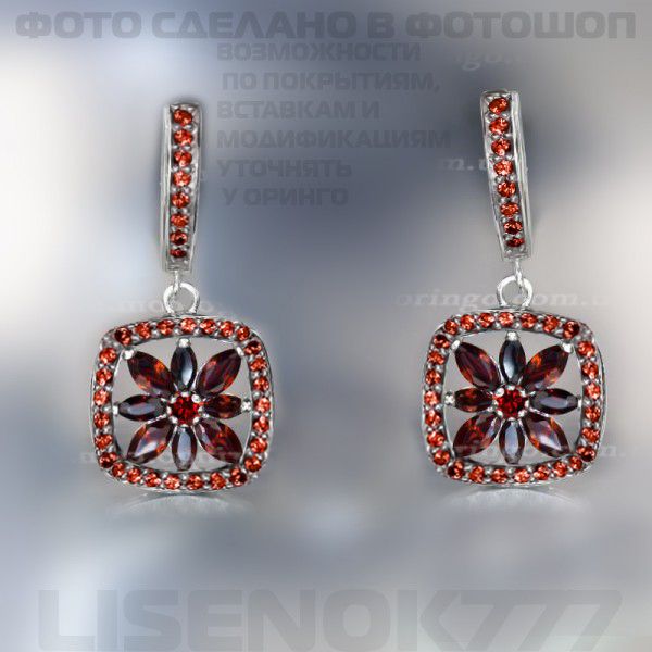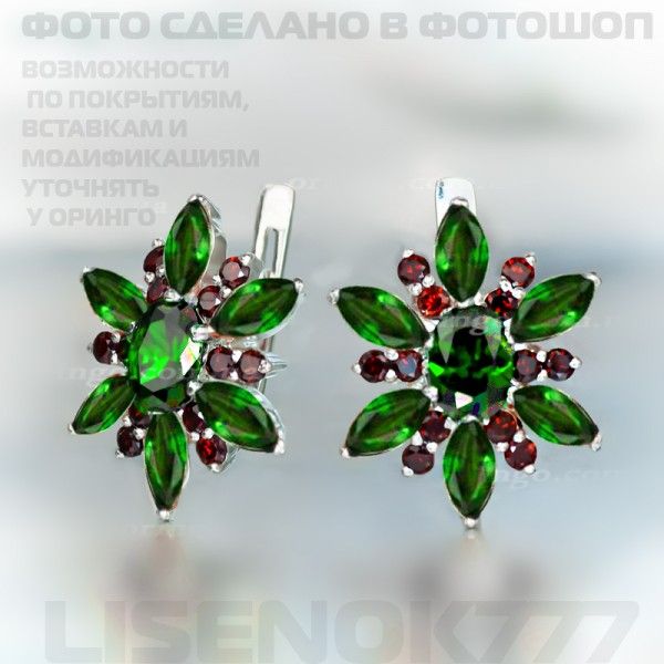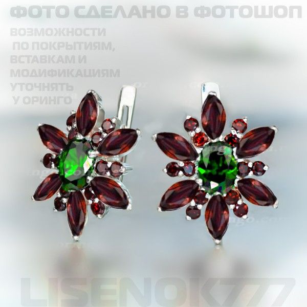 Помогите, пожалуйста, визуализировать серьги с гранатовыми вставками: