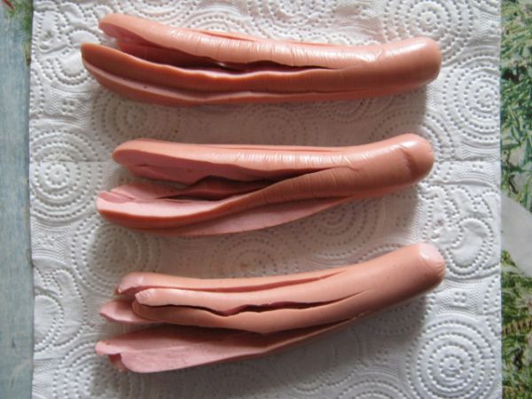 Чистим их от пленки и разрезаем каждую только с одного конца на 8 равных частей.
