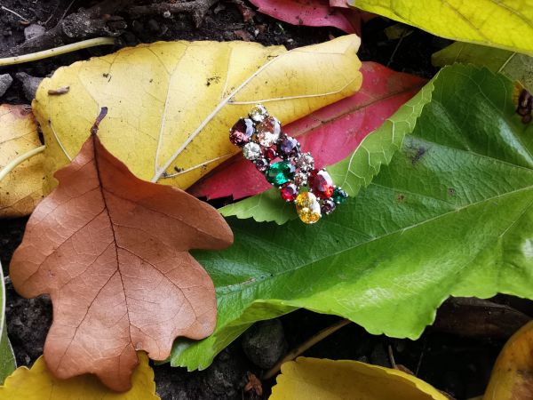 Такое странное получилось сочетание кабошона и циркониев, тёплых и ярких оттенков - краски осеннего леса)