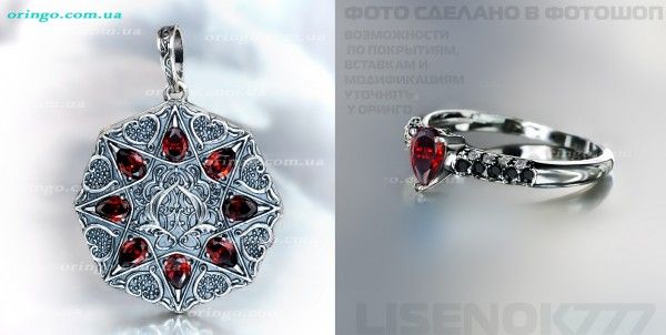 Добрый день, Даша! Выполните, пожалуйста, и мою просьбу. Очень хочется посмотреть на кольцо "Кристина" в оксидированиии с центральной вставкой гранатового цвета, а мелкие циркончики на плечиках расположить в двух вариантах: 1. Средний ряд - бесцветные, а боковые ряды - черные, 2, Средний ряд - черные, а боковые ряды - бесцветные. Можете расположить на фото рядом с подвесом "Вифлеем" в оксидировании с гранатовой вставкой? Благодарю