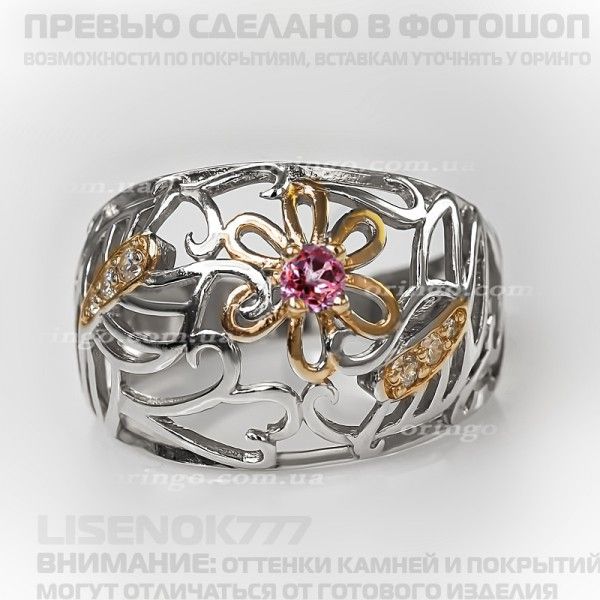 Коольцо "Июль" в комбипокрытии с розовым топазом