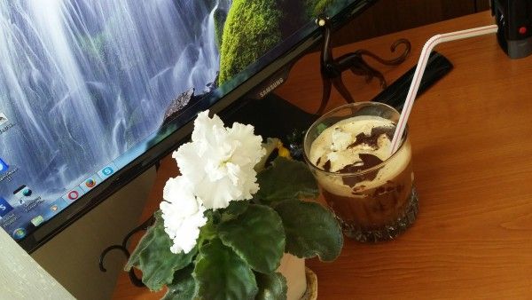 Сегодня за окном целый день дождь, хочется залезть под плед с любимой книгой в одной руке и чашечкой горячего кофе в другой, но ... работу еще никто не отменял, поэтому устроила себе летнее настрение на рабочем месте: цветы, любимый летний напиток и классная заставка на экране...