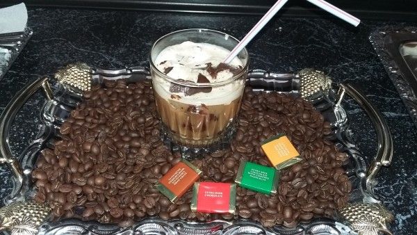 Заполняю бокал мороженым почти до краев и заливаю охлажденным кофе. Можно сверху украсить коктейль листиком мяты, тертым шоколадом, корицей. Но мне и так вкусно. Так как кофе крепкий и горький, шоколад черный и горький, а сладкое в этом напитке только мороженое - Глясе получается "горько-слегка сладким"