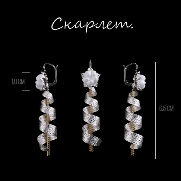 Вперше книгу "Скарлет" я прочитала десь 20 років тому,ще будучи школяркою.Якось їздили до бабусі і вона її читала,а так як мені було нудно я теж взялась за читання і я так захопилась, що випросила її додому, Вже потім через якийсь час я дізнась,що це лише продовження оригінального твору,ще й написане іншим автором.У той час знайти якусь книгу не в шкільній програмі було досить складно,Вже й непамятаю як і де я її дістала,але це була любов з першої сторінки, Потім в студенські роки до мене знову випадково потрапили ці чарівні 2 томи "Віднесених вітром" і я вже зовсім по іншому сприймала персонажів. І десь в той час переглянула фільм,Картина вийшла неймовірна, герої були саме такими,як я їх уявляла!!! Книга досі є однією з улюблених.Тому не дивно,що саме зараз на карантині,почавши ностальгувати я вирішила знову її перечитати і паралельно натрапила на Срібну мрію, Я одразу знала чим буду надихатись, сережки для Скарлет, Сережки "Скарлет", Сережки в яких можна піти на бал і в яких можна щодня відчувати наче ти збираєшся на вечірку, Сережки-трансформери.За основу я взяла квіточку бавовни(родина Скарлет плантатори бавовни),за ідеєю я хотіла щоб в основі було чотири перлинки,але не маю справи з ювелірними виробами тому не знаю чи це реально,спершу малювала в ручну,а потім попросилачоловіка реалізувати ідеї на компютері.Він трішки змінив квітку,але вийшло досить гарно.Також в процесі роздумів змінила застібку, оскільки думаю, що сережки будуть важкими. А тепер про деталь,що знімається, золоті ланцюжки символізують багацтво і розваги,все те до чого Скарлет прагнула все життя,а хвиля навколо:саме життя,яке проходить,вітер. Улюблена цитата з твору: "Я не буду думати про це сьогодні,я подумаю про це завтра".