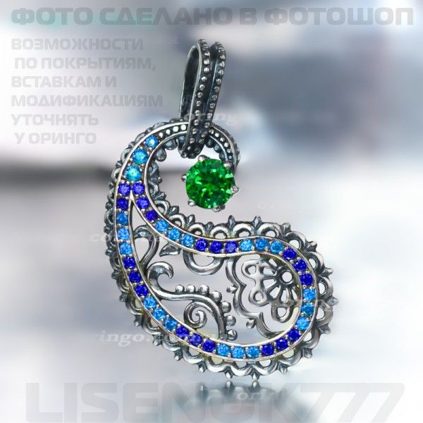 2. Цирконии по контуру (мелкие) - зеленый+бирюзовый, цирконии диаметром 6 - синие