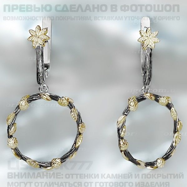 Дашенька, покажите, пожалуйста, эти серьги http://oringo.com.ua/tovari/vesenniy-venochek в разных вариантах комби-покрытия - обычная позолота с черным родием, лимонная позолота с черным родием, можно просто оксидирование. В общем, на Ваше усмотрение.