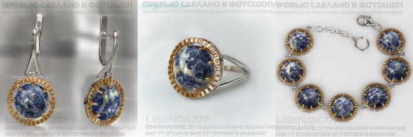 Здравствуй, Даша! Появившийся в литотеке содалит сподвиг меня задуматься о приобретении Шамбалы (серьги, кольцо Шамбала - 2, браслет) в комбипокрытии - белый родий + позолота. Пожалуйста, Даша, помоги с визуализацией!