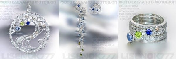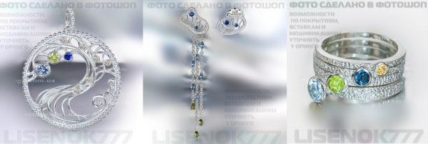 http://oringo.com.ua/tovari/veza, где в солнышке цирконы - шампань, в тучках - синие, маркизы в цепочках - аква, а груши на их концах - оливка (перидотового ничего нет подходящего, я выясняла, про оливку, правда, не спрашивала, сама нашла в каталоге ).