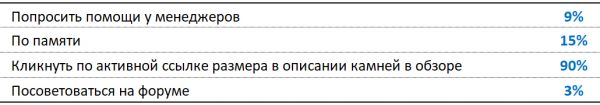 Нам важно понимать, что из наших возможностей для вас является более или менее удобным. Можно было выбирать несколько вариантов, лидирует способ кликнуть по активной ссылке размера в описании камней в обзоре - целых 90%.