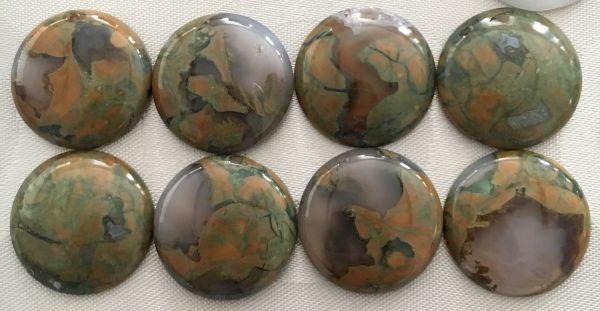 Кроме тех камней, что показали выше, есть ещё оставшиеся круги 10 мм из серого халцедона и дендроагата, а также нефрит 25 мм.