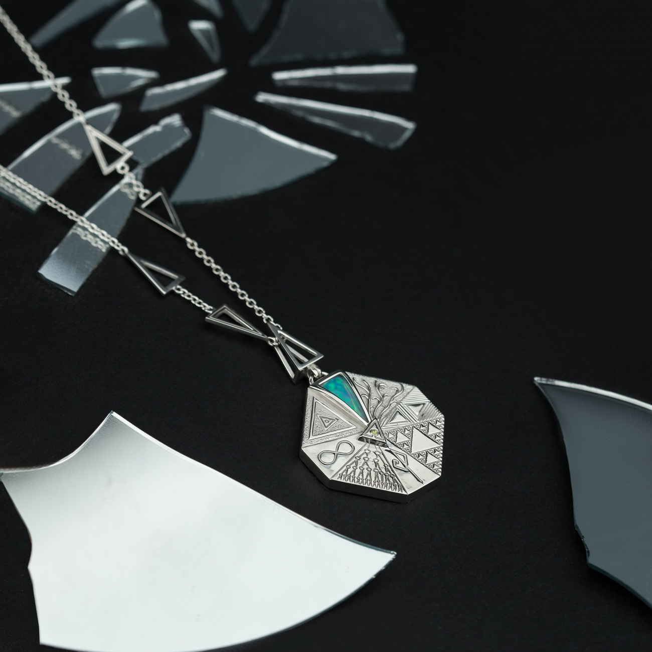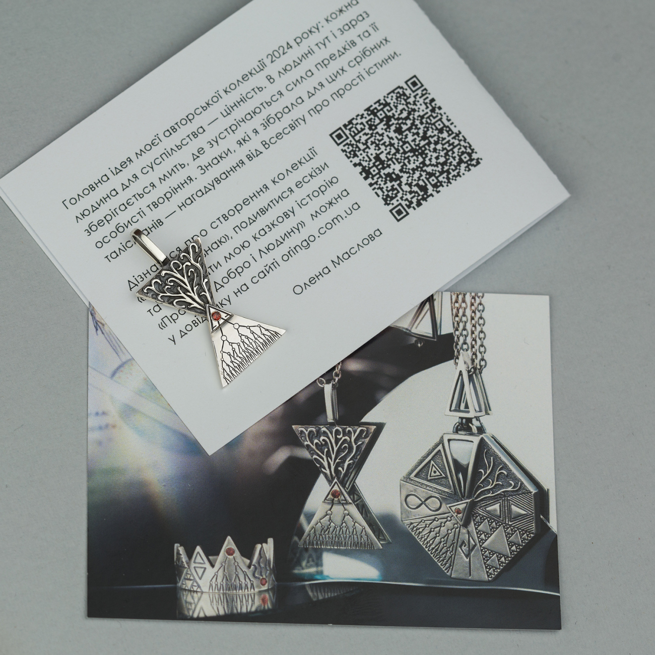 ...Алгоритм — та основа, до якої легко додаються пояснення. Ланцюжок «Алгоритм» теж має ясну вдачу і просту логіку: не дасть заблукати, якщо інше видаватиметься складним та заплутаним. А вісім трикутників-вказівників цікаві, тактильні та й просто гарні, як до підвісів, так і самі по собі.