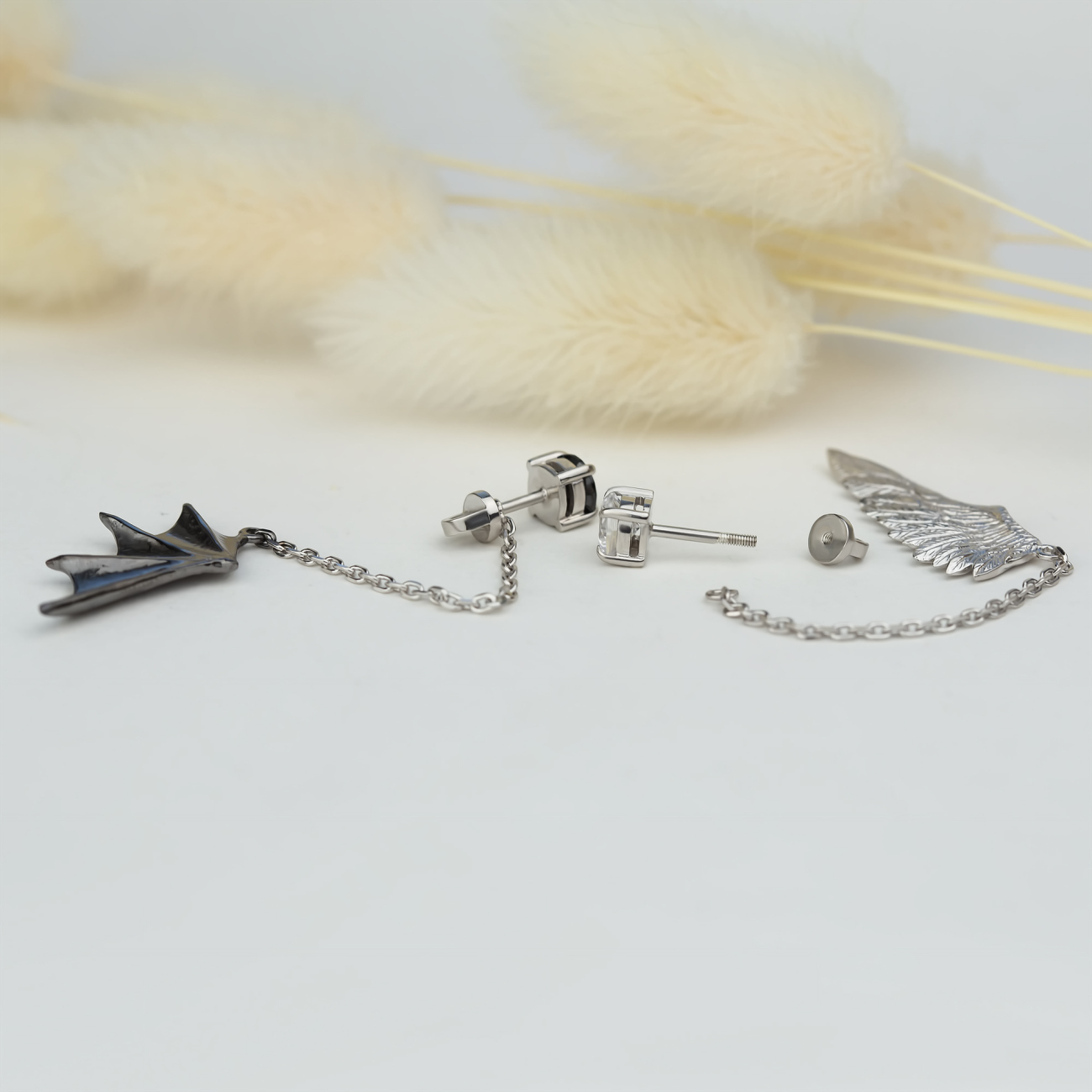 Габаритні розміри сережок: висота (довжина) – 80 мм; ширина – 16 мм; довжина штиря до закрутки – 5 мм.