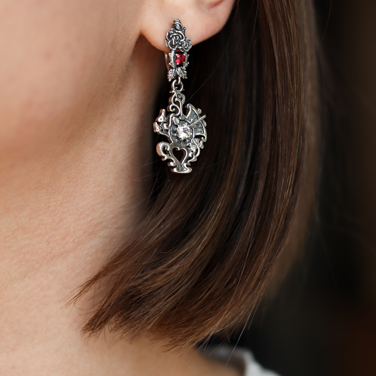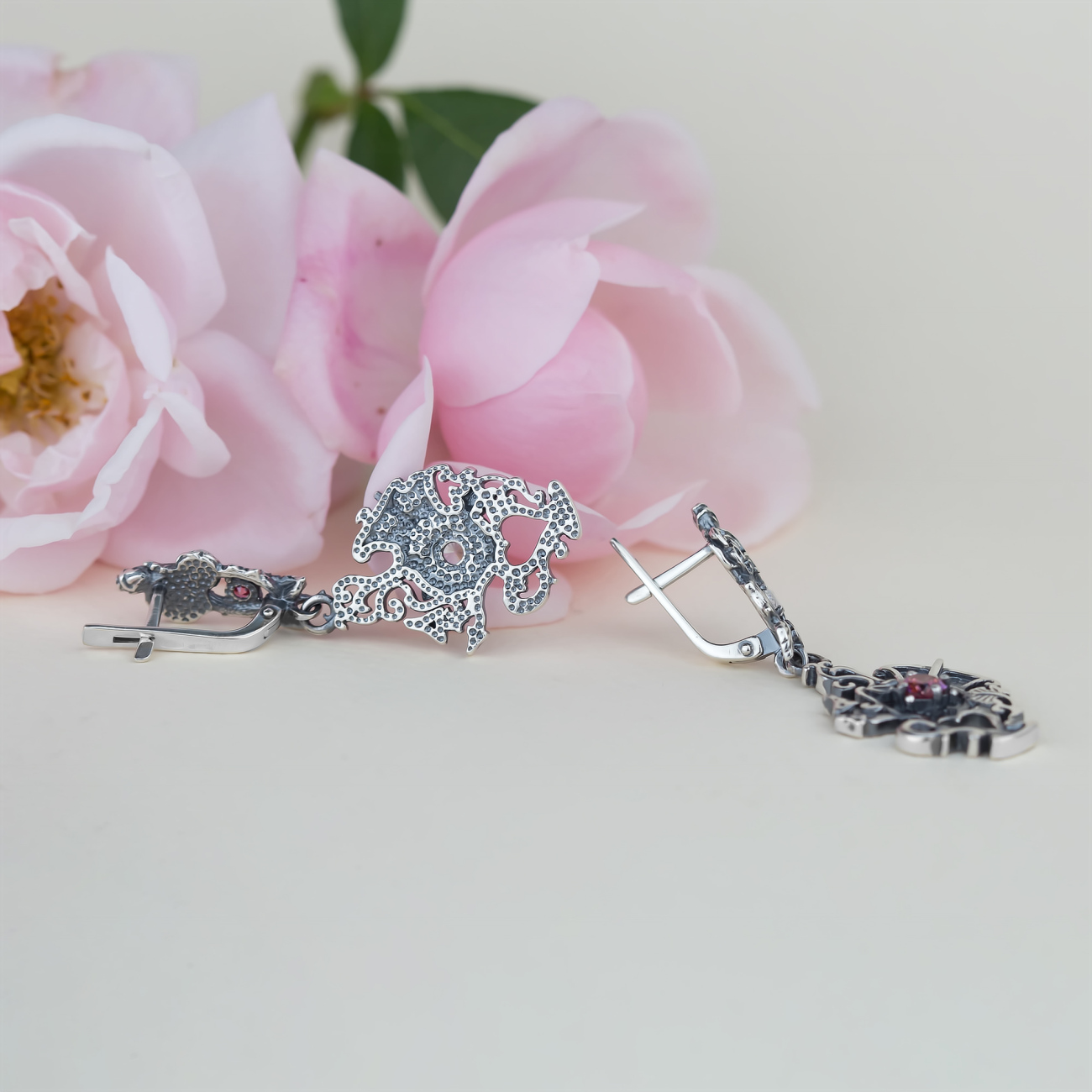 Габаритні розміри сережок: висота (довжина) – 44 мм; ширина – 17 мм; довжина гарпуна до застібки – 6 мм; внутрішня висота сережки (місце для мочки) – 9.5 мм.