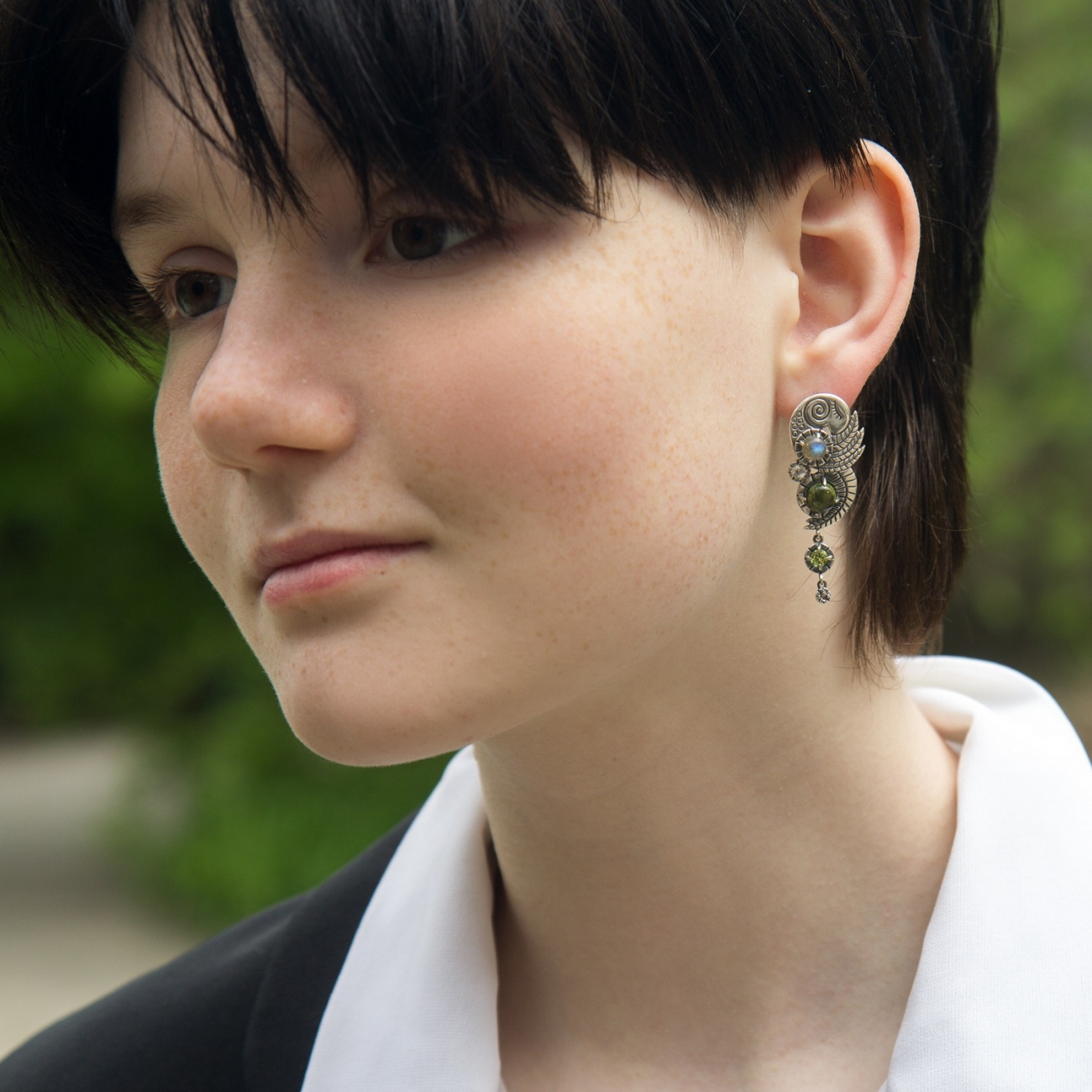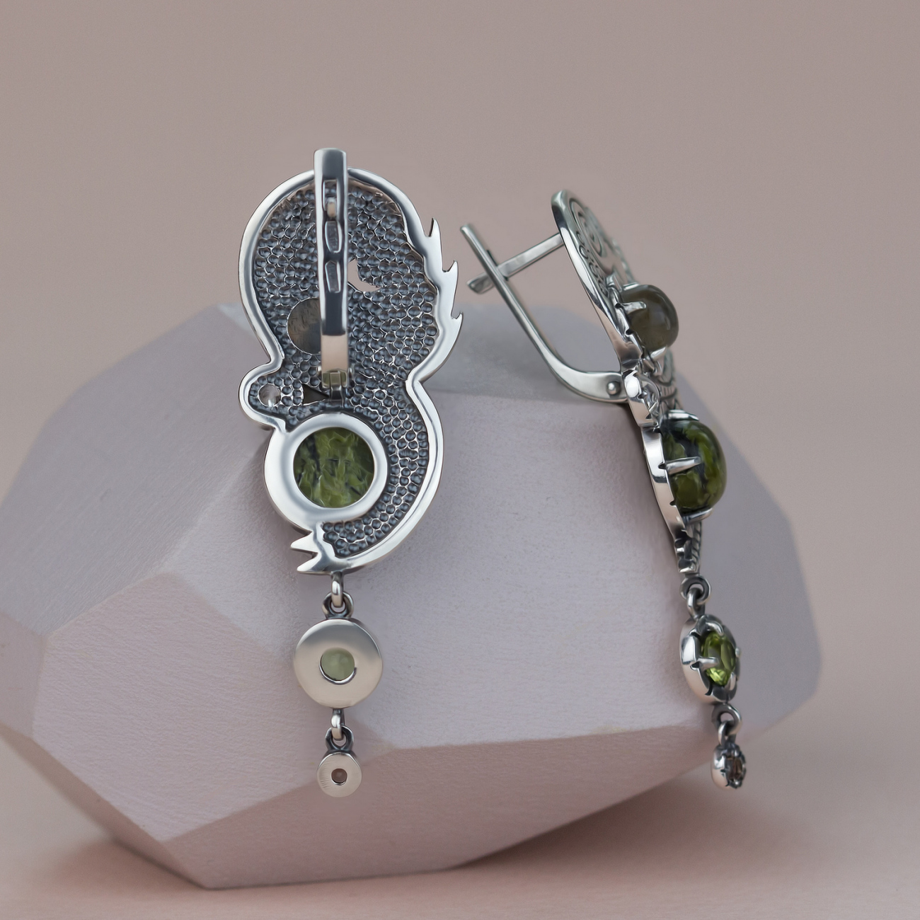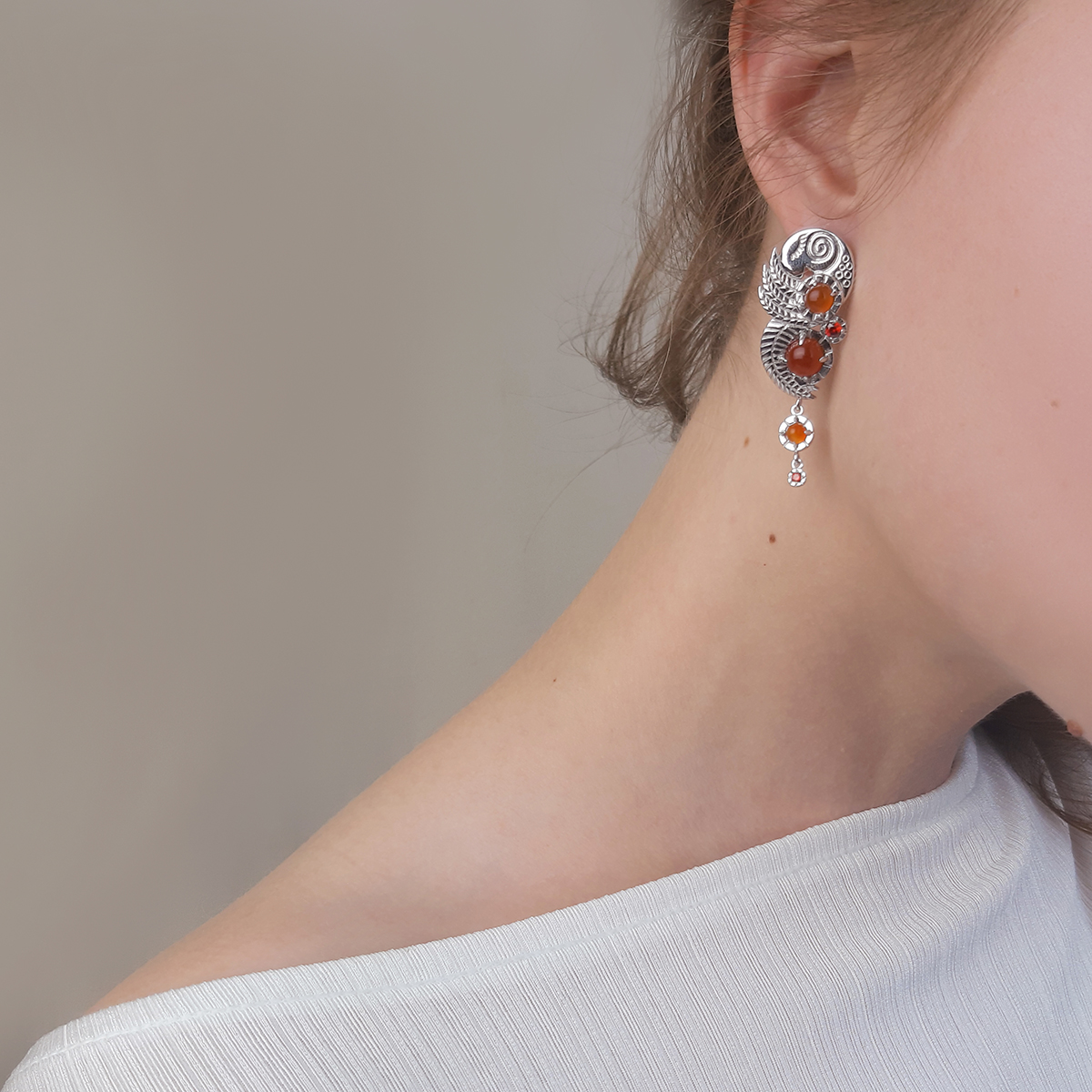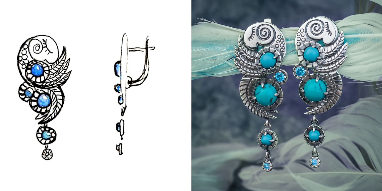 Габаритні розміри сережок: висота сережки – 47 мм (нерухома частина 30 мм та рухомі касти 17 мм), ширина – 17 мм; довжина гарпуна до застібки – 6 мм; внутрішня висота сережки (місце для мочки) – 10 мм. Сережки закривають прокол, відстань від гарпуна вгору – 3 мм.