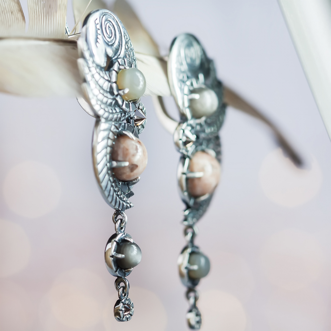 Габаритні розміри сережок: висота сережки – 47 мм (нерухома частина 30 мм та рухомі касти 17 мм), ширина – 17 мм; довжина гарпуна до застібки – 6 мм; внутрішня висота сережки (місце для мочки) – 10 мм. Сережки закривають прокол, відстань від гарпуна вгору – 3 мм.