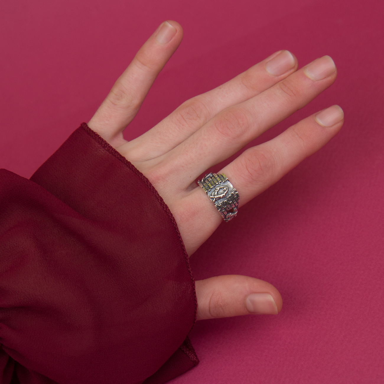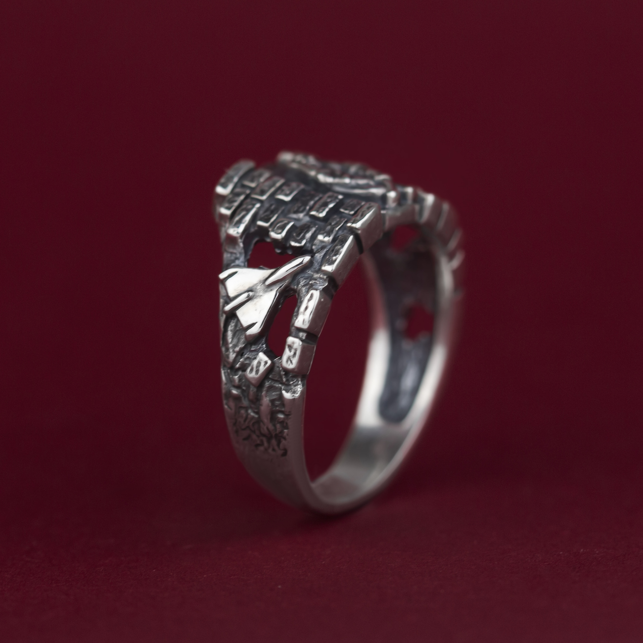 Ширина верху каблучки по пальцю 12 мм, висота над пальцем 3 мм, ширина шинки при основі 3,5 мм