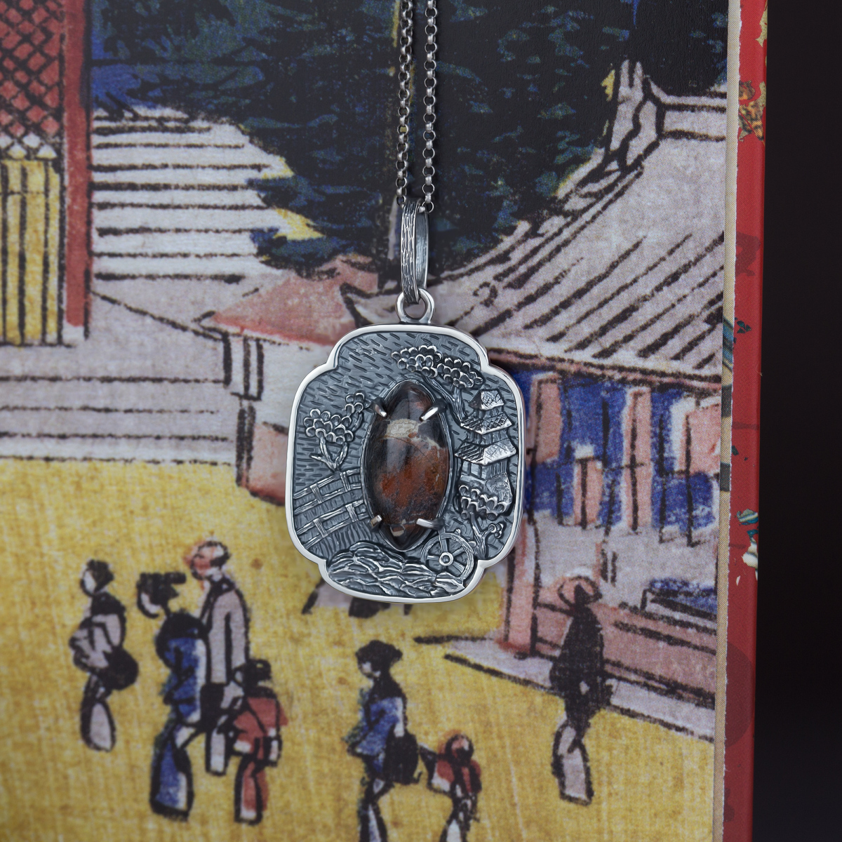 "Фуекі-рюко" у буквальному перекладі означає "те, що вічно тече". В прикрасі відбито японський принцип "кан'ї" («просте»). Зверху – старовинний замок і стародавні дерева, що відбивають принцип "фуекі" («незмінне»). Вода, що біжить під колесом, – відображення принципу "хен'єкі" («мінливе»). Все разом – дивовижний сплав непостійності та вічності.