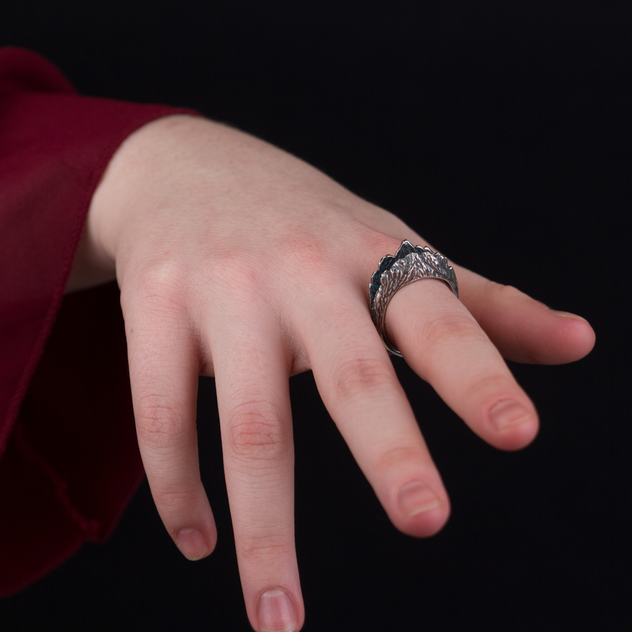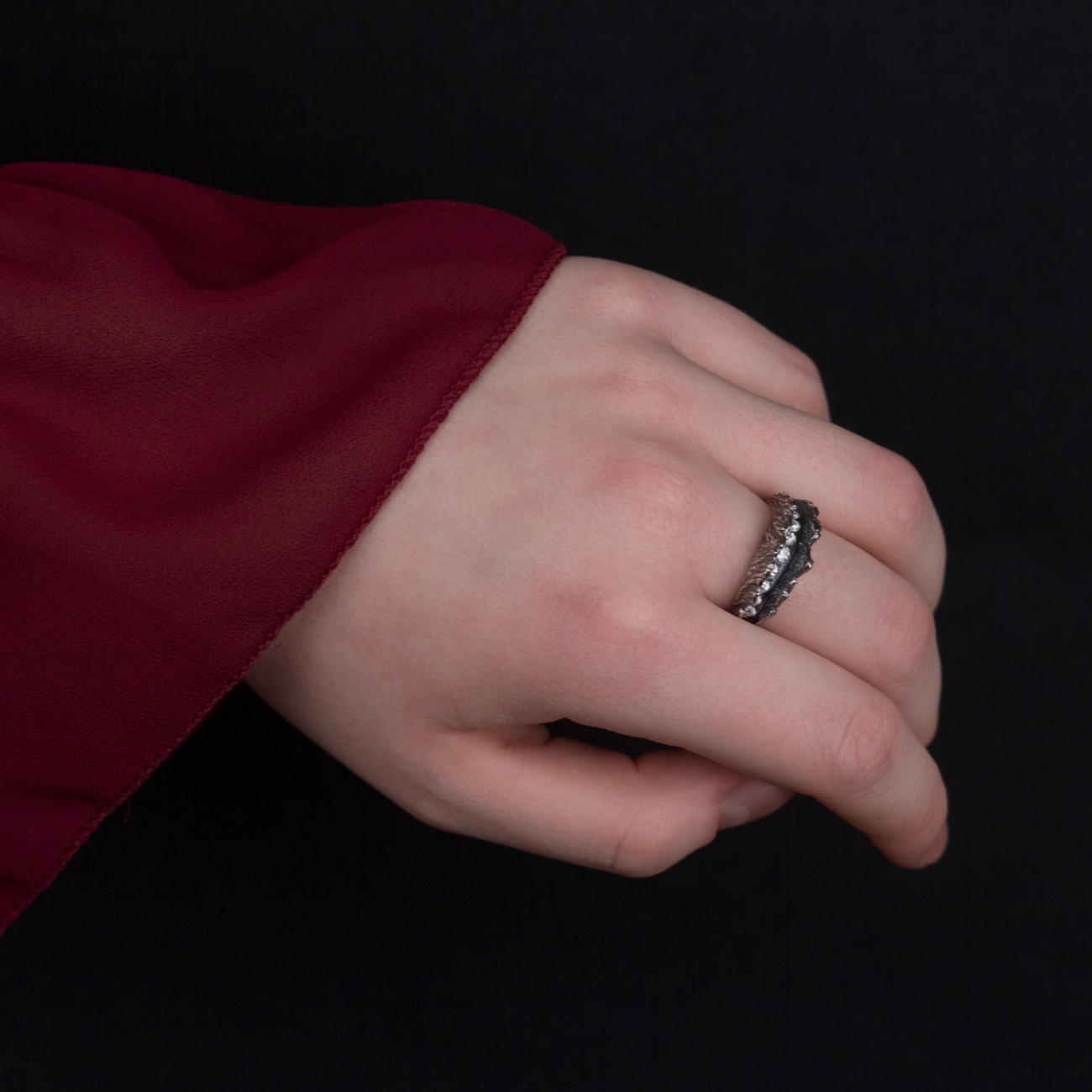 Ширина верху каблучки по пальцю 7 мм, висота над пальцем 9 мм, ширина шинки при основі 2 мм.
