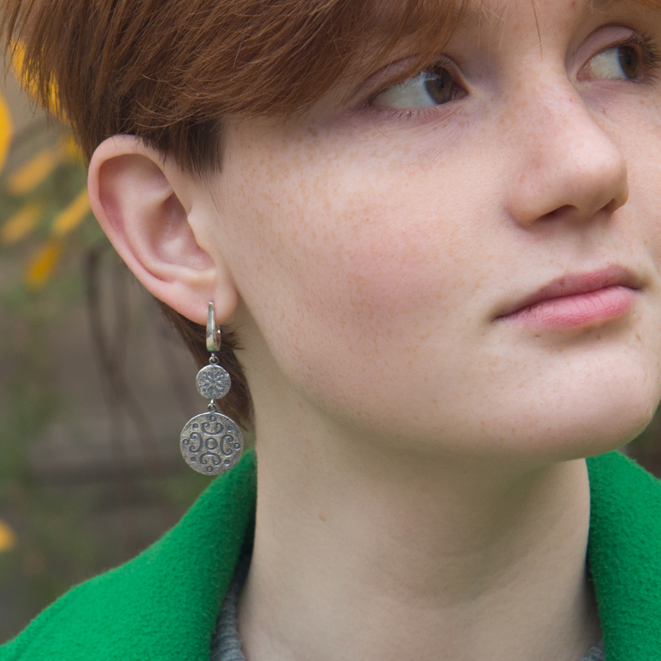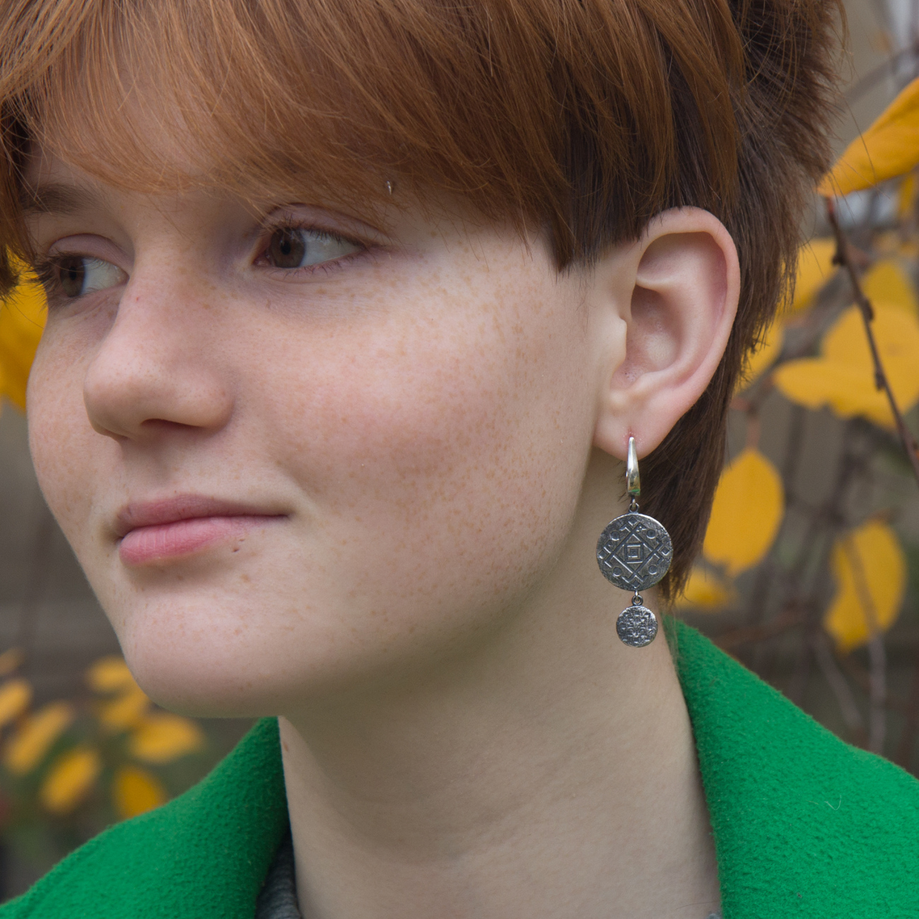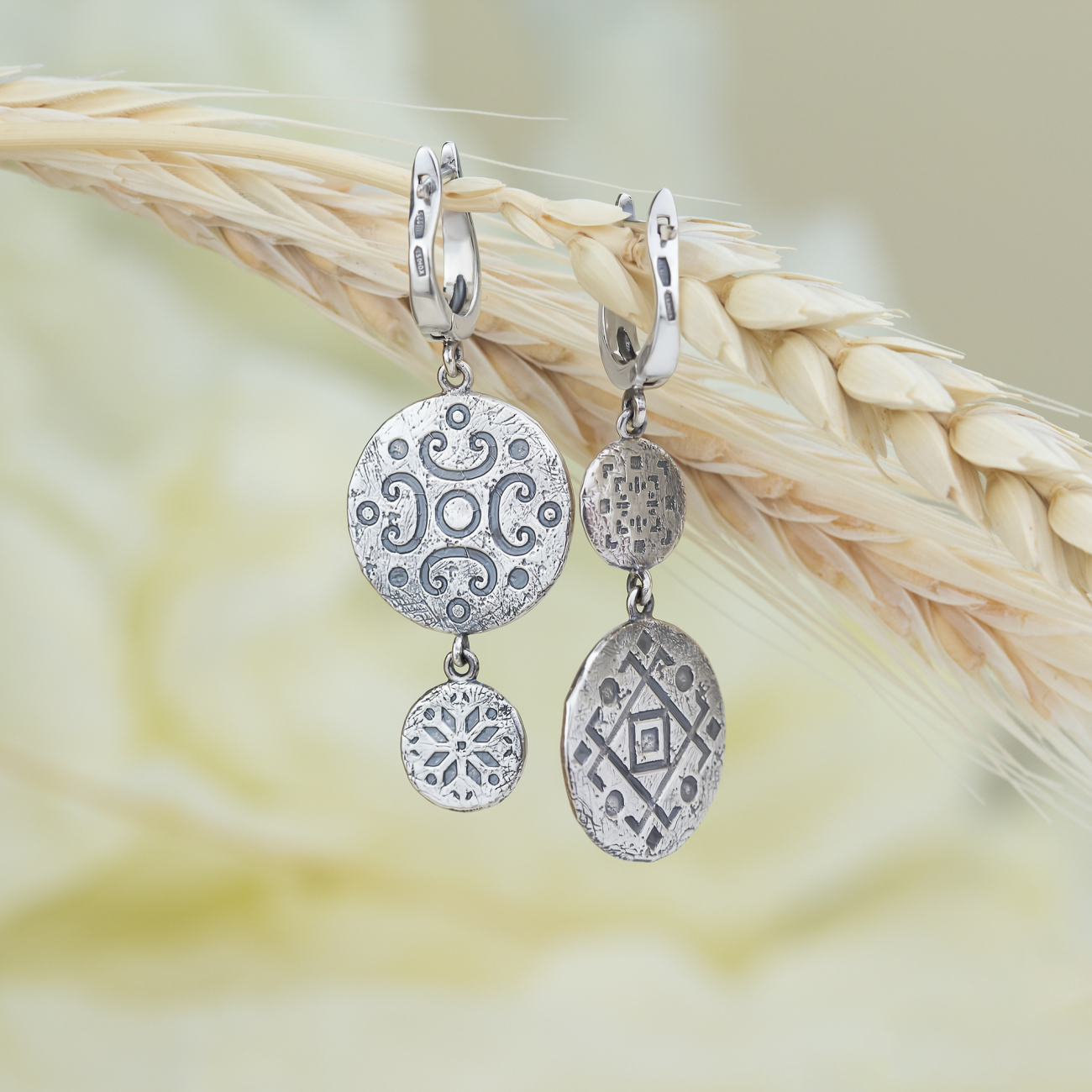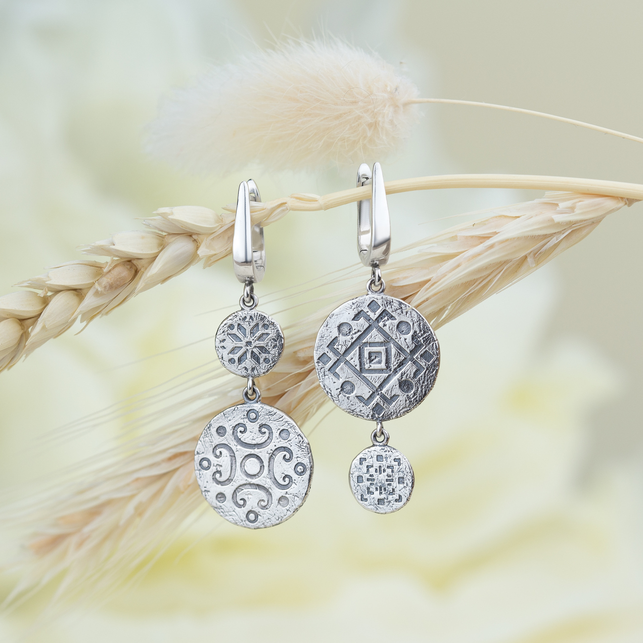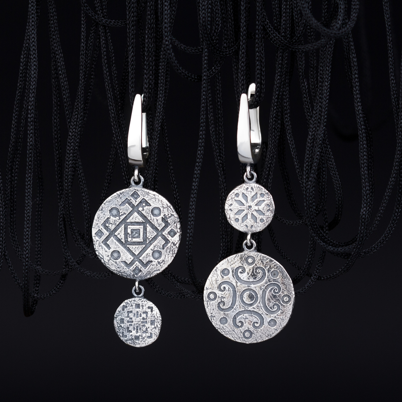 ... сучасні срібні сережки, в яких поєднуються зрозуміло-впевнений верх і з’єднані з ним назавжди знаки підтримки від наших міцних коренів. Якщо колихнути їх та уважно послухати, то можна почути натяки, підказки чи поради від бабусь і дідусів. На безліч поколінь углиб тягнеться наше коріння, і нашим предкам є що нам передати про важкі роки та страшні часи, про життя та радість всупереч тим часам, про кохання, мрії та надії.