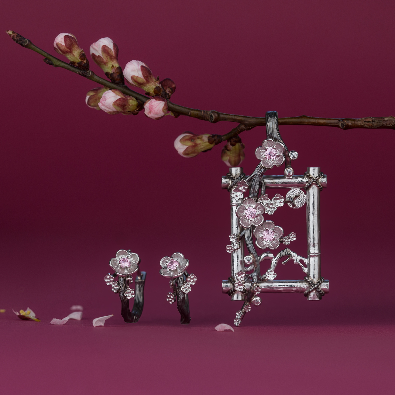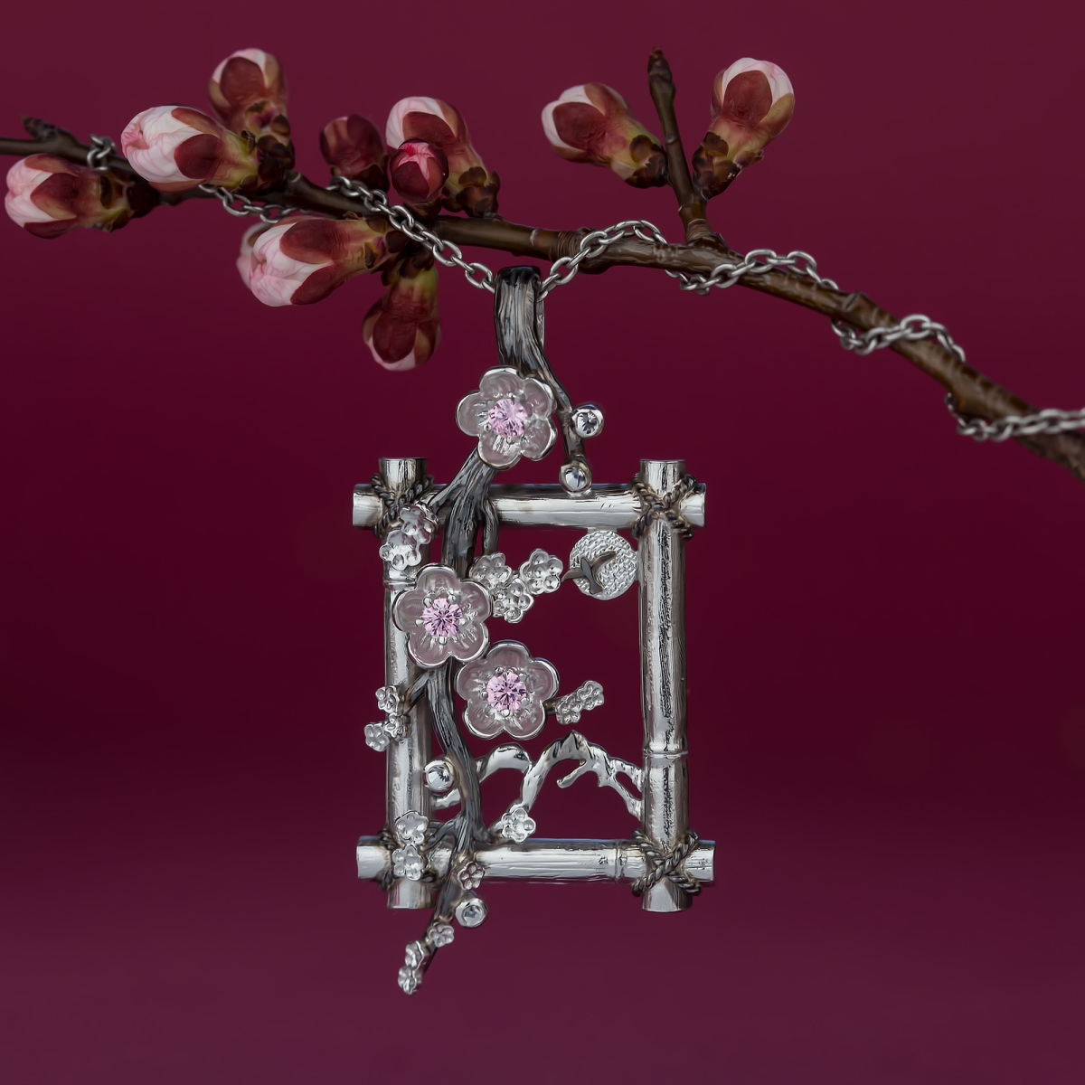 Зберігає чарівну мить цвітіння підвіс «Ханамі». Це перший подих весни, замріяне тремтіння рожевих пелюсток. І навіть коли ви доторкнетесь до квітів, вони не зів’януть, а радість не згасне.