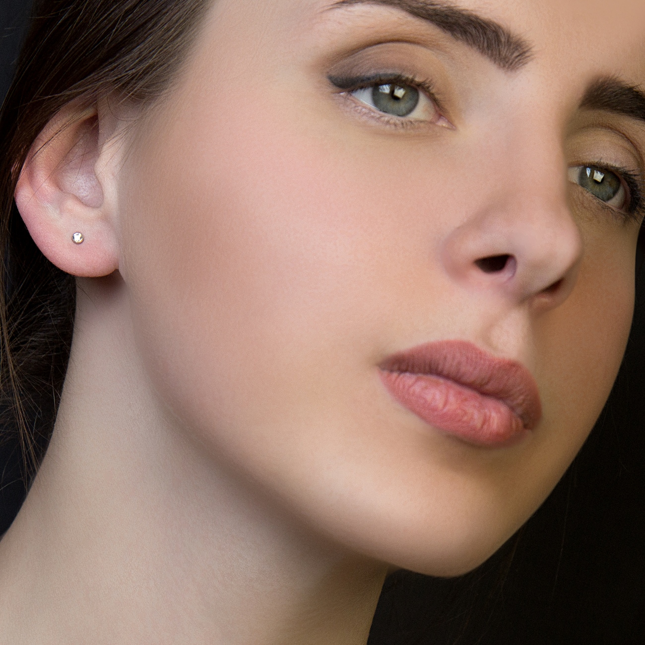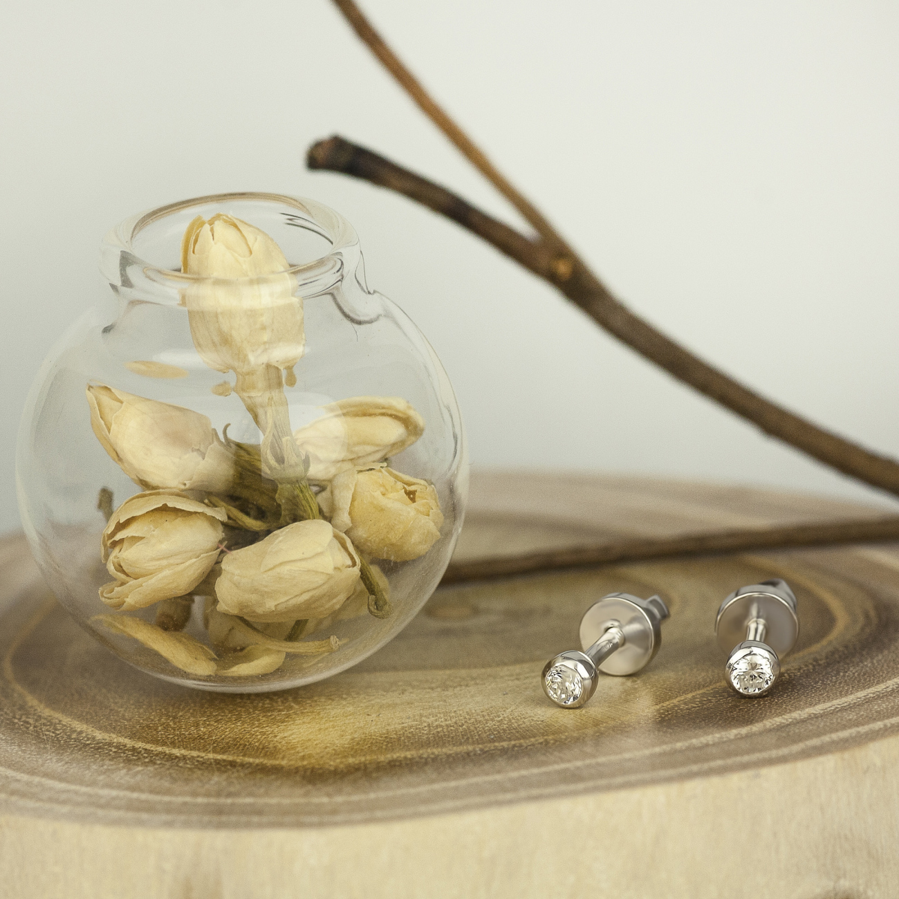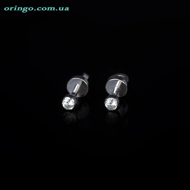 Габаритні розміри сережок: діаметр – 3 мм; висота над мочкою – 2 мм; довжина гарпуна до закрутки – 5 мм.