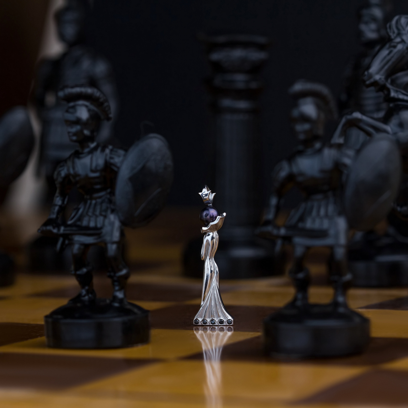Сильна та владна жіноча шахова фігура, ферзь, – втілення королівської величі. Горда посадка голови і тонкий стан – ця королева воістину велична! Тільки подивіться, як сміливо вона стоїть перед своїм шаховим військом, готова першою зустріти ворожих вершників. Спокійна і врівноважена, владна, впевнена у своїх силах, наймогутніша постать на всій дошці... Білій королеві може протистояти тільки чорна, і більше ніхто.