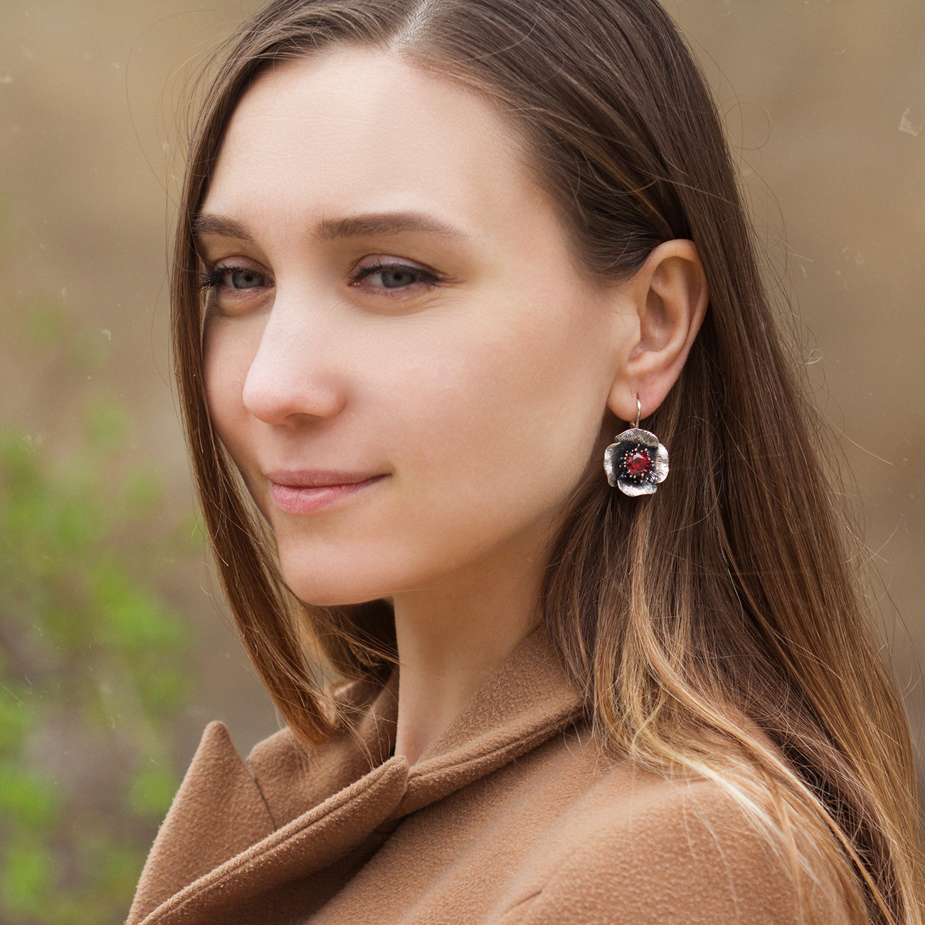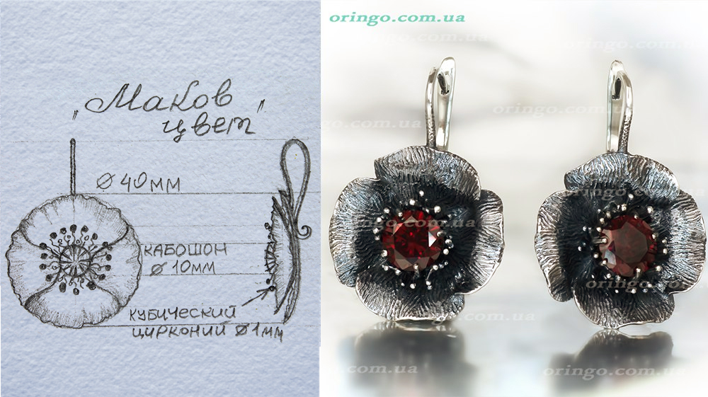 Габаритні розміри сережок: висота - 33 мм; ширина - 23 мм; довжина гарпуна до застібки - 7 мм; внутрішній діаметр сережки (місце для мочки) - 11 мм.