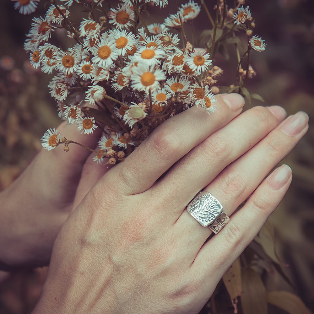 Габаритні розміри каблучки: довжина по пальцю - 15 мм; висота над пальцем - 2 мм.