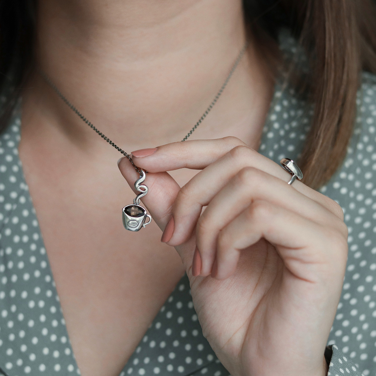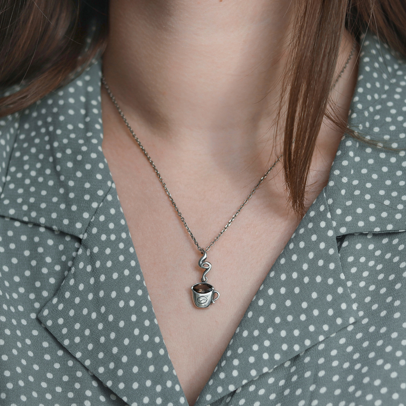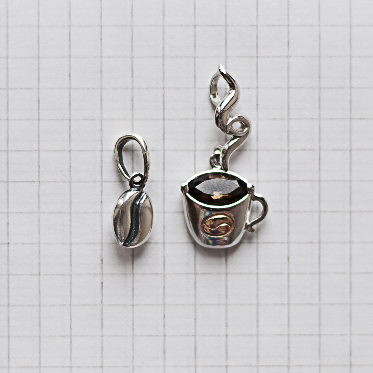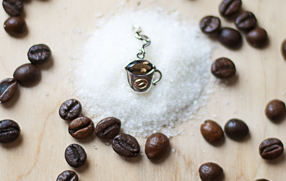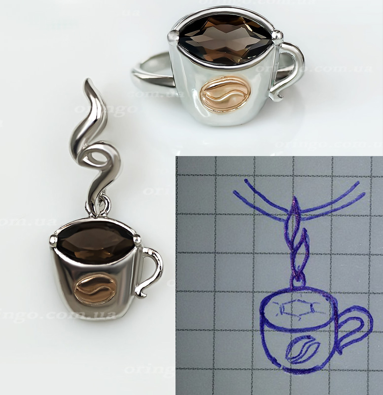 Підвіс "На філіжанку кави" створено за мотивами ескізу Вероніки Володимирівни (Nikachka). Ювелір-модельєр: Сергій Дорошенко.