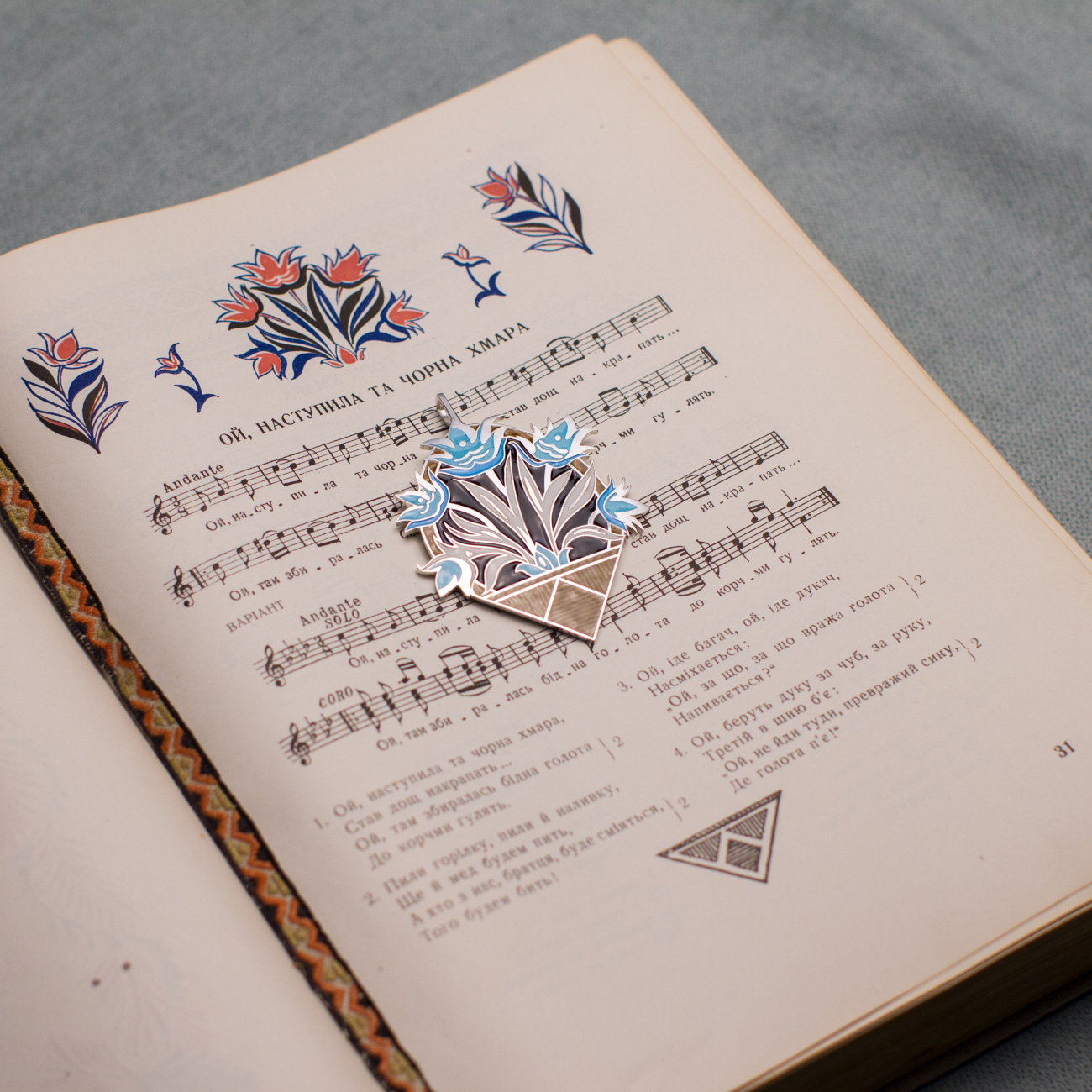 Схожа прикраса за мотивами творчості В.Г.Кричевського наразі експонується на виставці "Орінго. Мистецтво срібних історій" у Скарбниці Національного музею історії України. Вітрина 22, "Надихаючись Слобожанщиною"