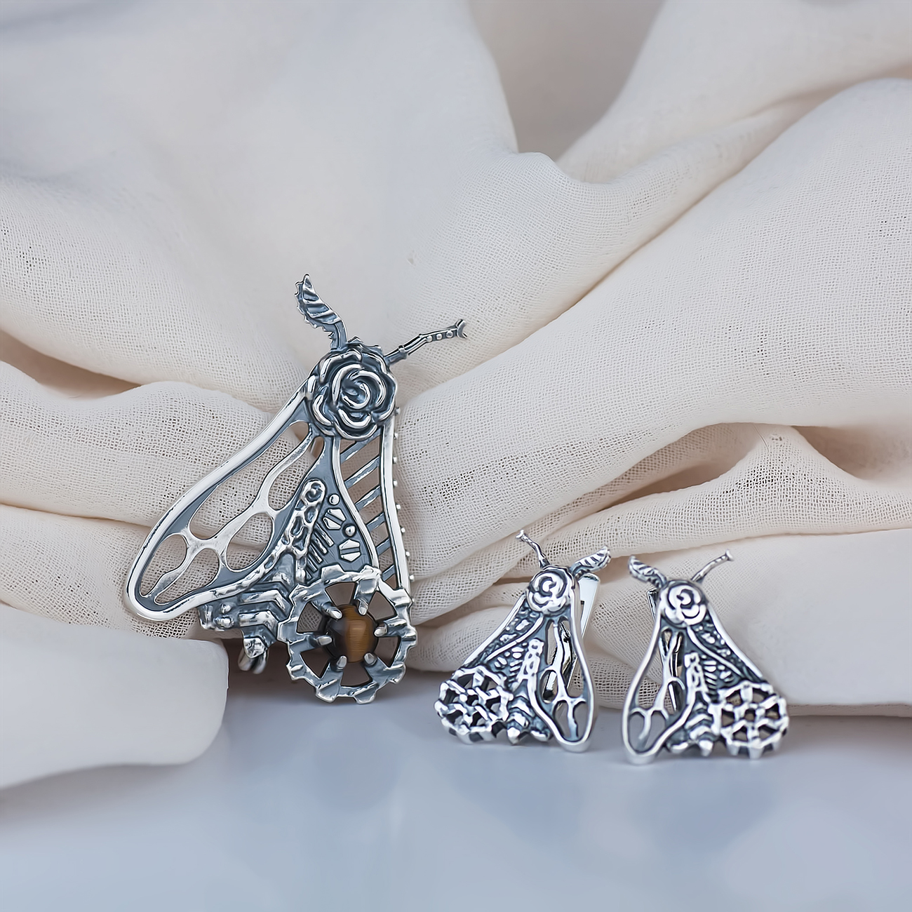 Габаритні розміри брошки: висота - 34 мм, ширина - 25 мм. Довжина голки - 23 мм.