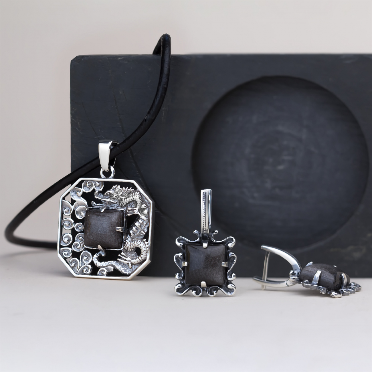 Срібні завитки, що оточують кабошон, нагадують язички полум'я в каміні або вогнищі, чи візерунки на камінних кахлях...