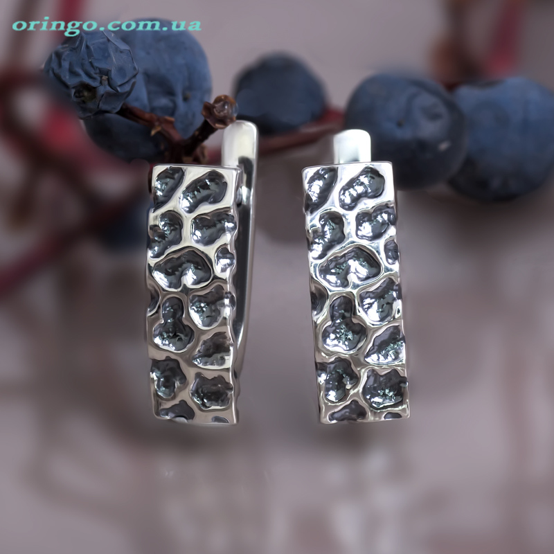 Габаритні розміри сережок: висота (довжина) - 17 мм; ширина - 6 мм; довжина гарпуна до застібки - 6 мм; внутрішня висота сережки (місце для мочки) - 10 мм.