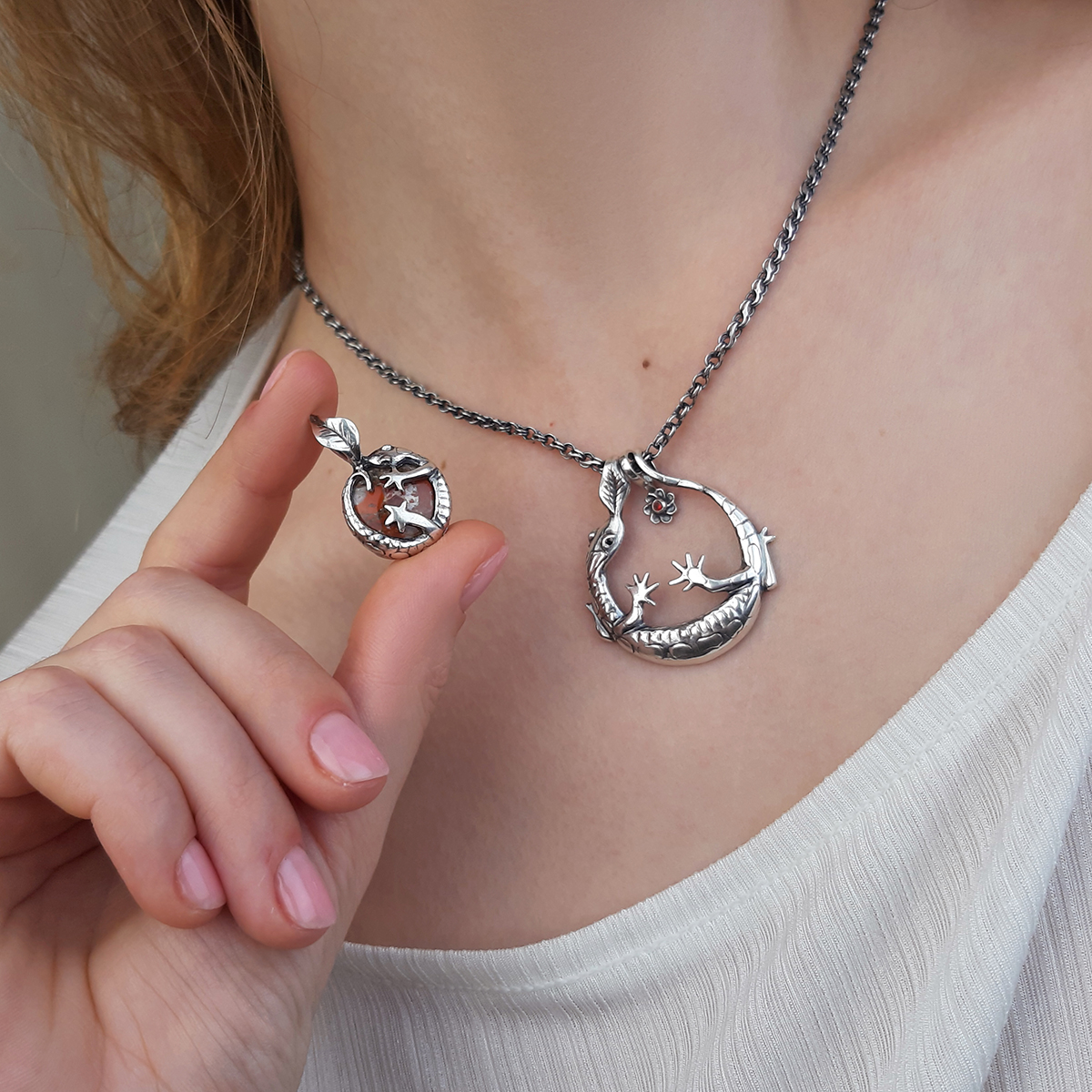 «Это подвес-трансформер в виде двух ящерок, большой и маленькой. Как мама и дитя, рядом и с ощущением защищённости и уверенности друг в друге».