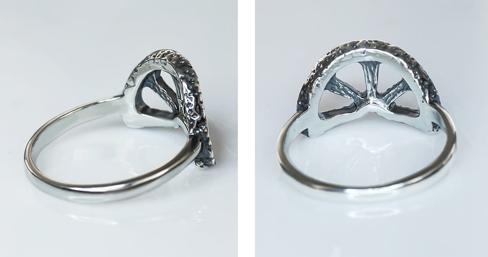 Габаритні розміри каблучки: довжина по пальцю –10 мм; висота над пальцем – 2 мм