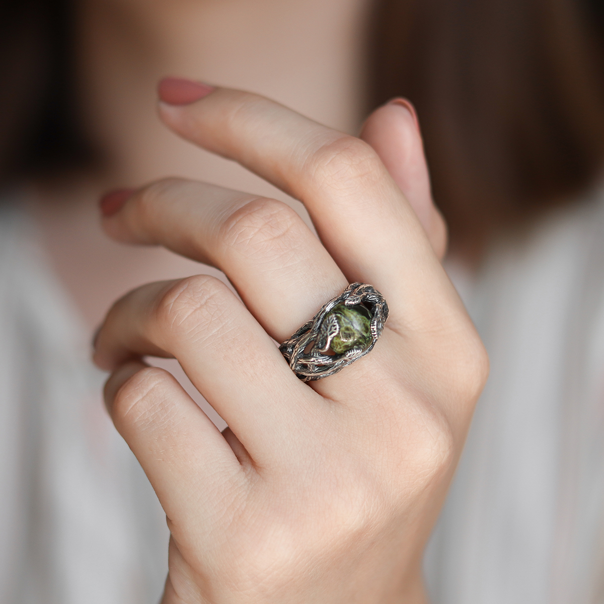 Габаритні розміри каблучки: довжина по пальцю (в найширшому місці) – 12 мм; висота над пальцем – 9 мм.