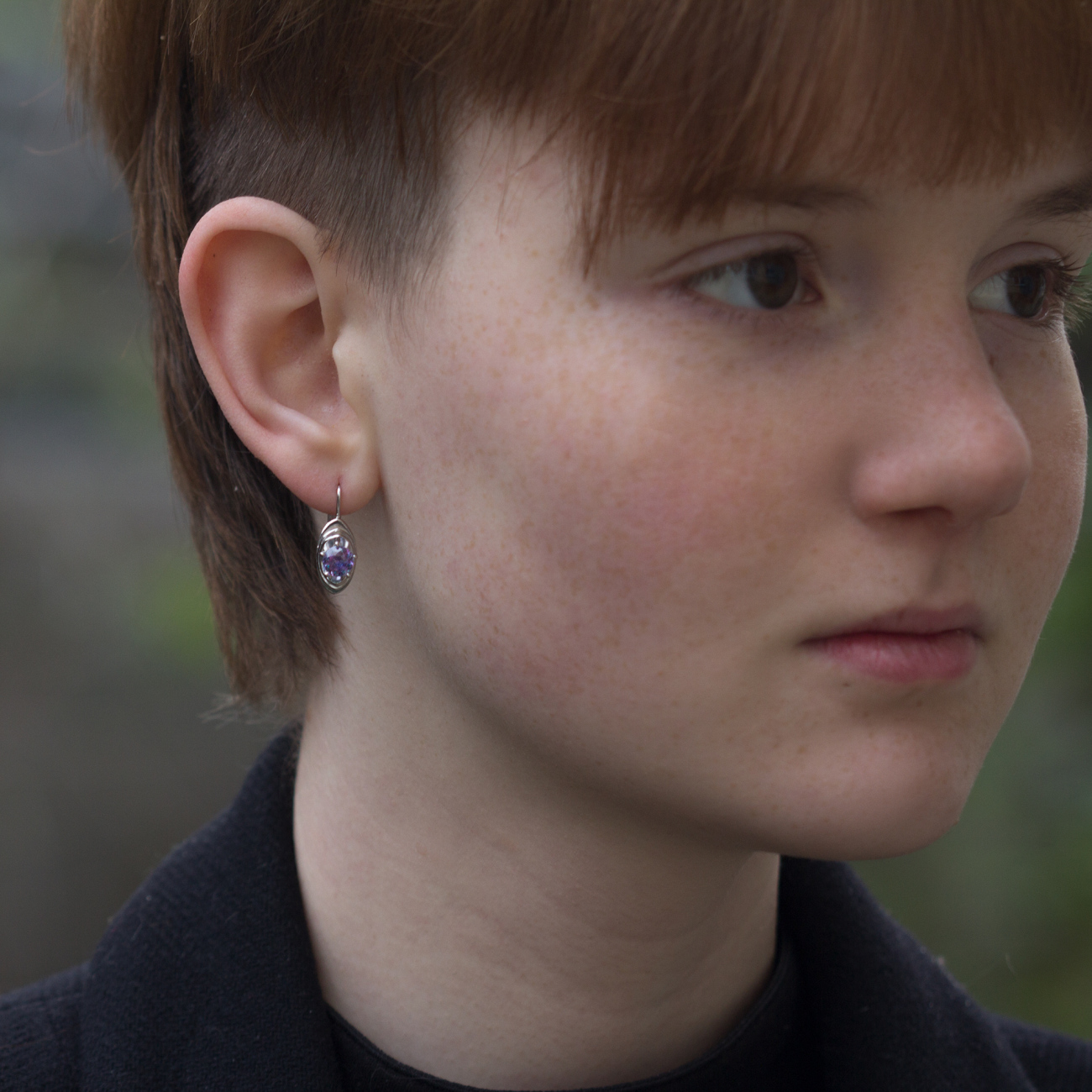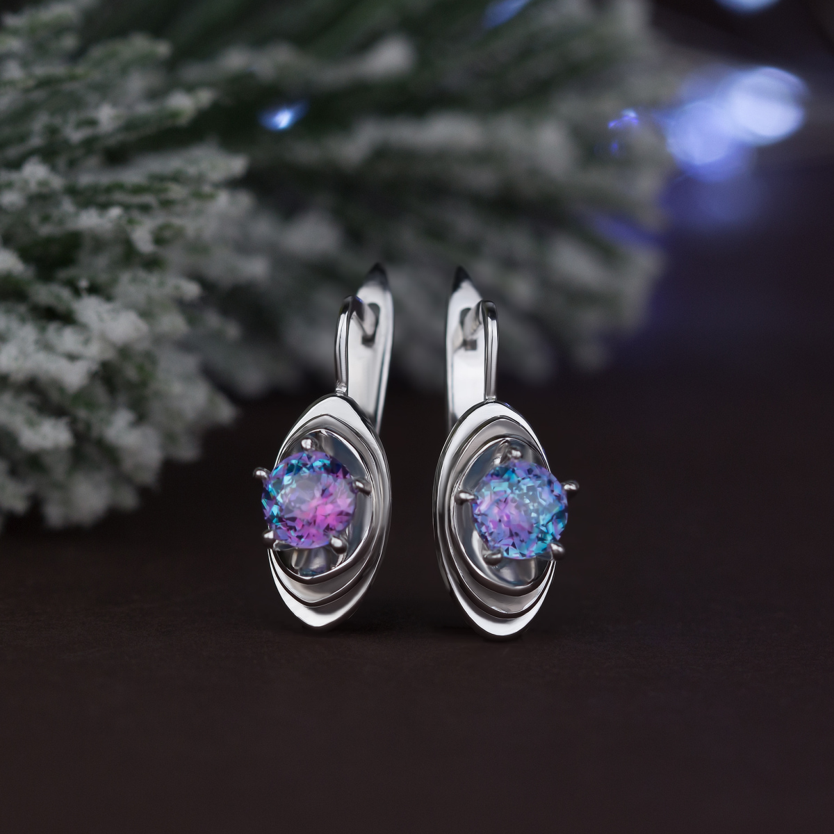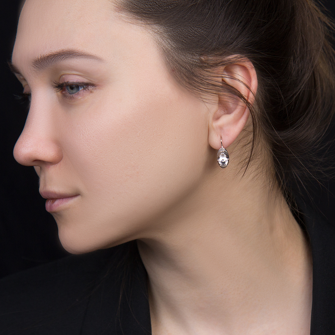 Камінчик у ошатних сережках піднятий високо над вигнутими, немов у посмішці, пелюстками срібла.