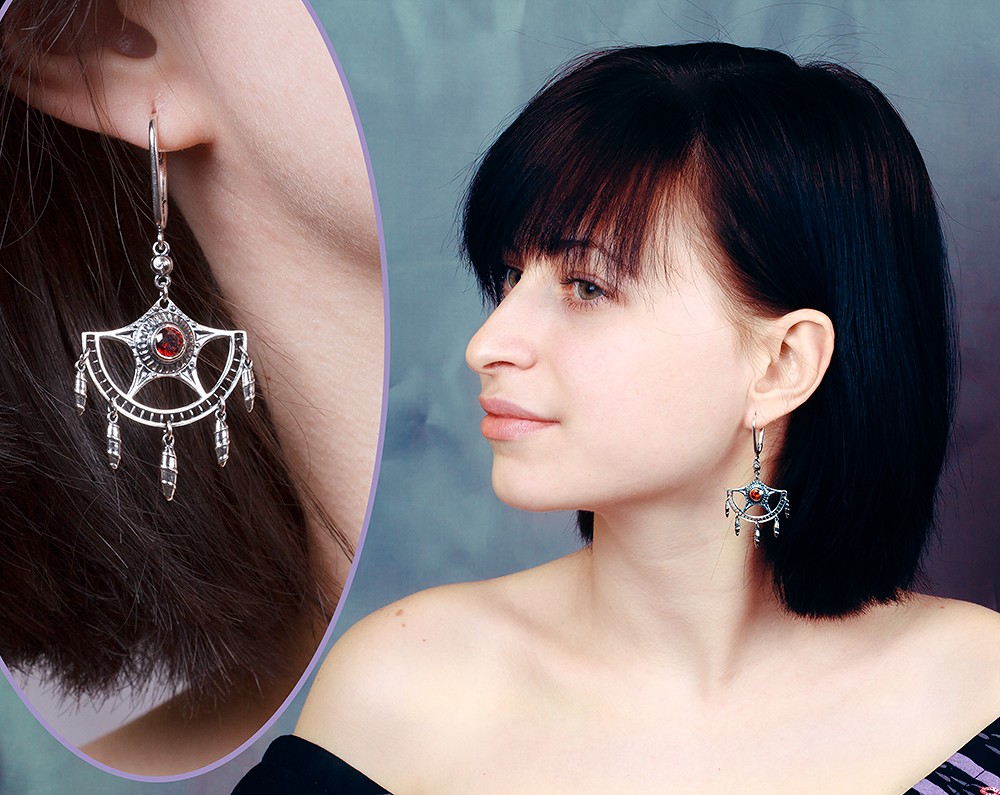 Габаритні розміри сережок: висота (довжина) – 60 мм; ширина – 27 мм; довжина гарпуна до застібки – 6,5 мм; внутрішній розмір сережки (місце для мочки) – 14 мм.