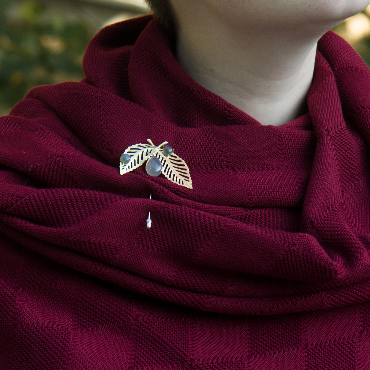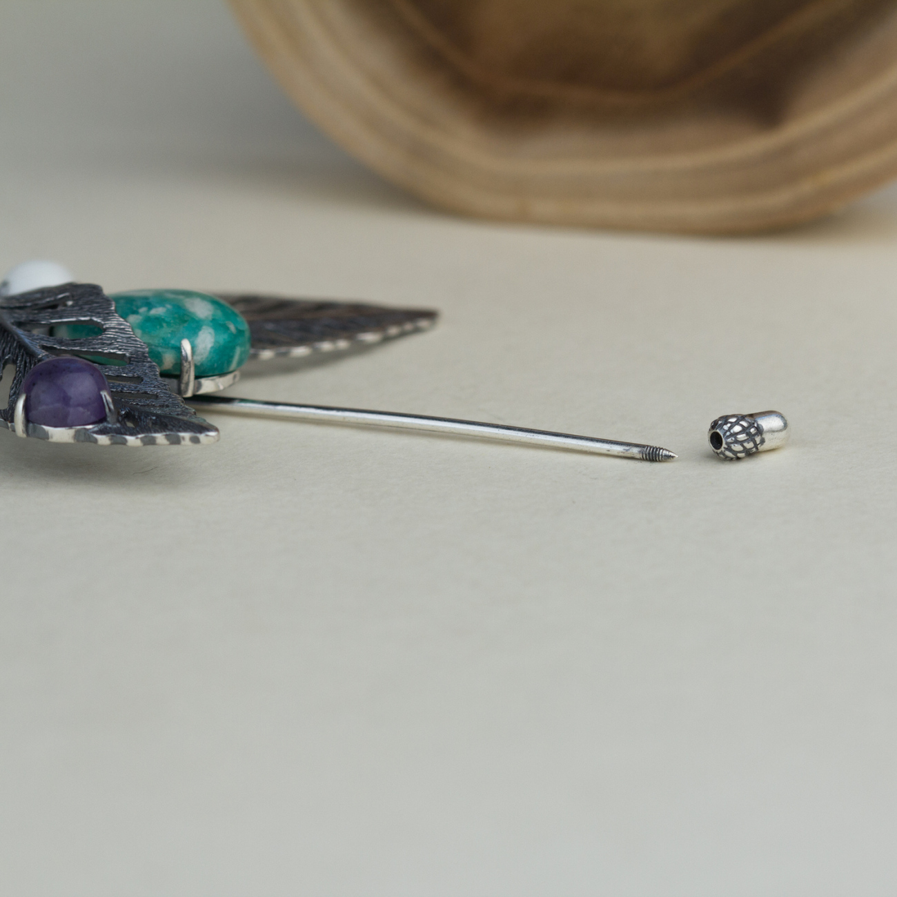 Габаритні розміри брошки: висота - 68 мм; ширина - 49 мм, довжина голки - 45 мм.