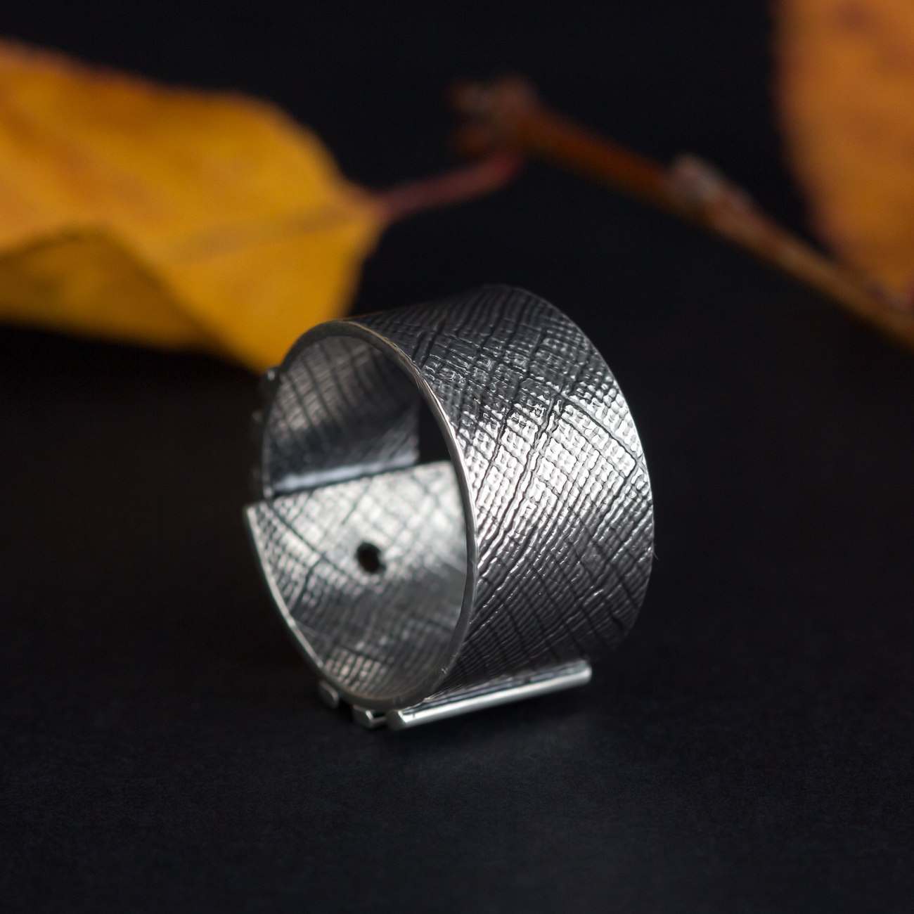 Ширина верху каблучки по пальцю 13 мм, висота над пальцем 7 мм, ширина шинки при основі 11 мм.